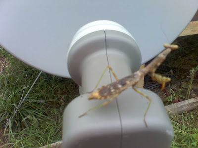 I am really enjoying trying to catch strange things on my camera phone. This one is really not all that strange, but still worth blogging about. Check out the Preying Mantis that was setting on our satellite dish. It’s not often that you see them and even less often that they pose for a picture.