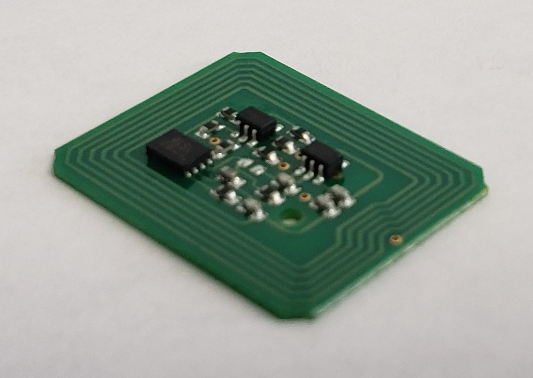 | Photo by Scott Hamilton RFID tag from laser printer toner cartridge used to track cartridge life. |
